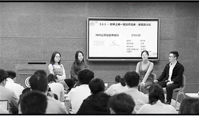 beat365在线体育官方网站金融学院本科生金融工程概论课程“翻转课堂”活动——学生在重现世界上第一笔货币互换的案例。(毛静供图)
