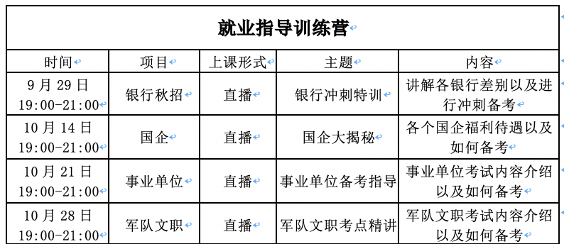 本期辅导班新增设就业指导训练营+多种考试录播网课辅导版块,采取直播+录播相结合的形式全方位帮助学生进行备考提升。