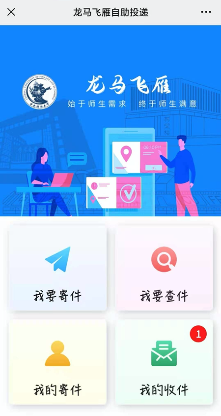 根据学校党史学习教育总体安排和“我为群众办实事”实践活动要求,为切实解决师生反映普遍的非工作时间段两校区文件类快递投递难问题,在充分调研论证的基础上,学校办公室从即日起在两校区同时试运行“龙马飞雁”自助投递柜,实现手机实时下单,24小时自助寄件,进一步提高文件投递信息化、自助化、便捷化水平。请广大师生寄送文件类快递时,优先使用“龙马飞雁”自助投递柜,投递柜分别设置在学院南路校区办公楼一层大厅西侧、沙河校区大学生活动中心一层大厅东门南侧,工作人员将于工作日中午依托学校班车统一运送快递至相应校区,具体使用指南详见附件。欢迎广大师生使用!