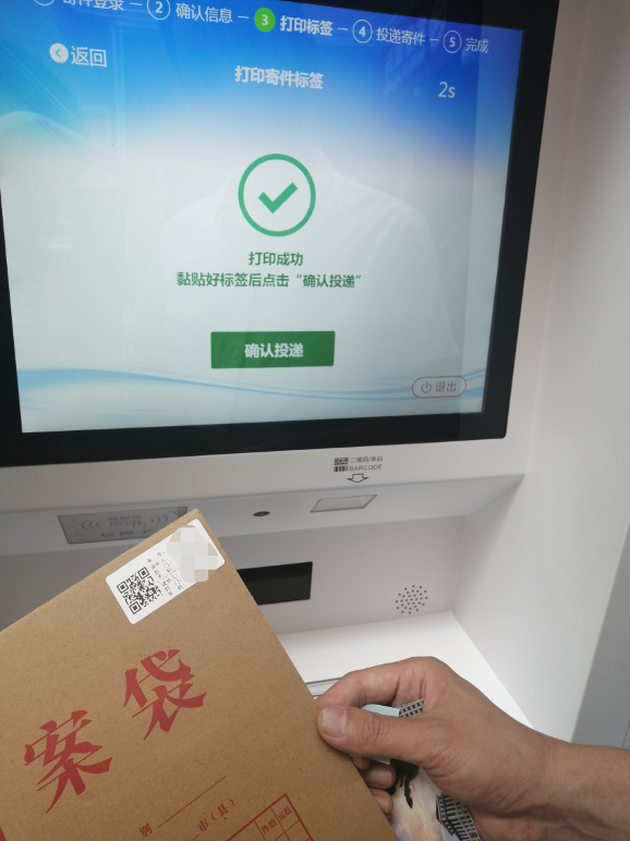 4.点击“确认投递”,将文件袋投入投递口,即可完成寄件。