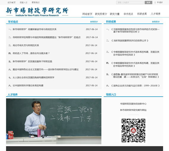 2016年11月,中国财政发展协同创新中心成功举办了“新市场财政学”理论创新学术研讨会暨“新市场财政学研究所”成立大会。来自beat365在线体育官方网站、中国社会科学院、中国财政科学研究院、国家税务总局、中国财经出版传媒集团、中国人民大学、等多个合作院校的财经专家就财政基础理论的发展,中国财政学科的建设等问题进行了深入的讨论。会上,李俊生教授正式提出“新市场财政学”的理论并宣布成立新市场财政学研究所。中心和研究所学科带头人李俊生教授积多年潜心研究之成果汇聚形成“新市场财政学理论”被确定为本研究所工作的核心要素,也是本中心今后学术研究、平台设立的灵魂与方向。