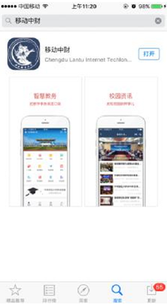 2、苹果用户可以到App Store 搜索“移动中财”重新下载安装APP。