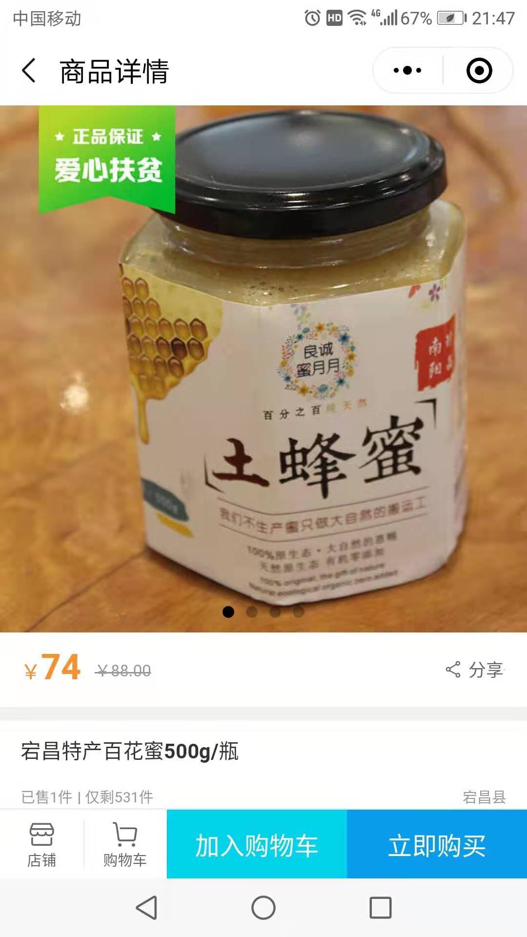 第三步:选择自己喜欢的商品,比如选择“宕昌特产百花蜜500g”