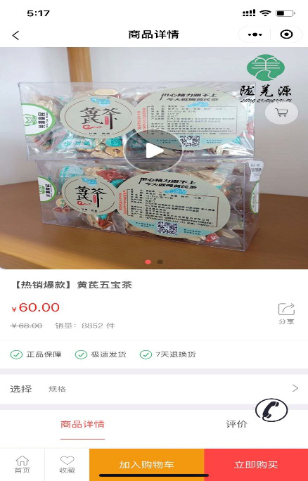 第三步:选择自己喜欢的商品,比如选择“黄芪五宝茶”