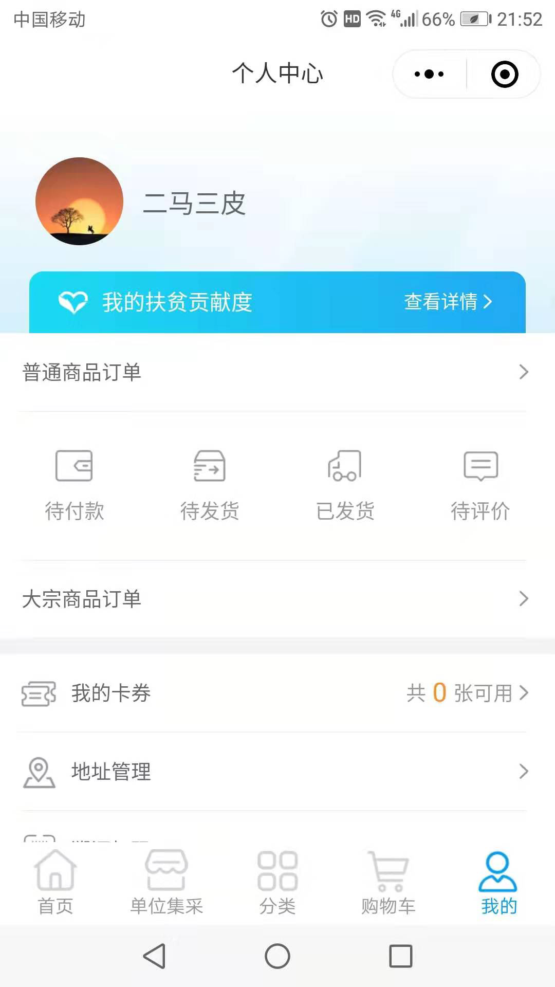 第五步:点击“我的”进入个人中心界面,点击“我的扶贫贡献度”