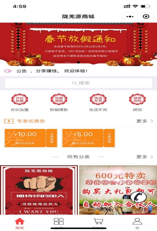 第二步:进入陇羌源商城界面,可以领优惠券