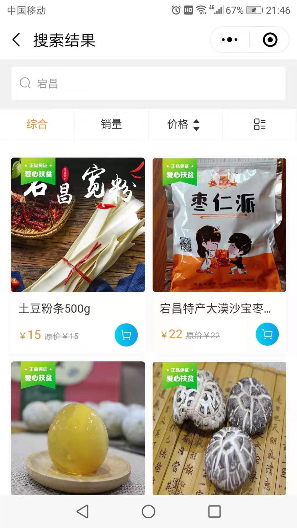 第二歩:进入销售页面,可搜索“宕昌”,出现宕昌农产品页面