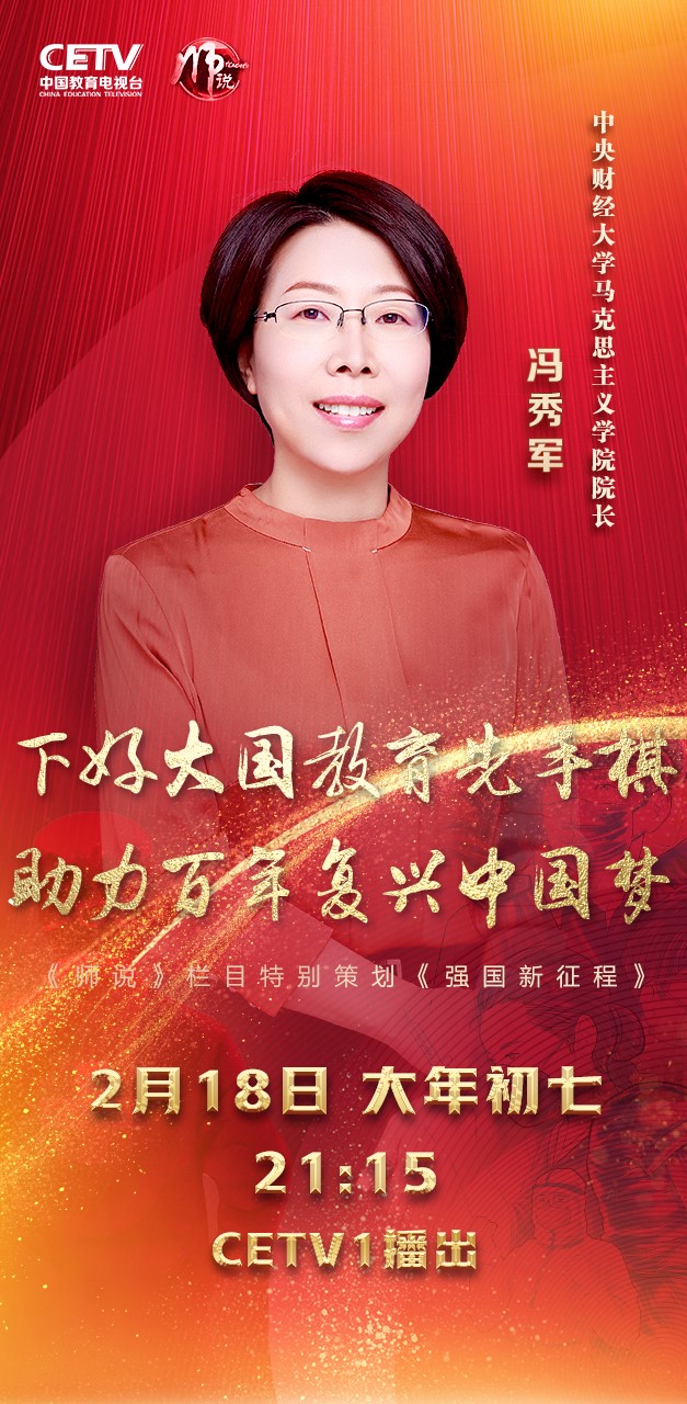 2月18日晚21:15,《强国新征程》节目将在中国教育电视台一频道播出第七集,beat365马克思主义学院院长冯秀军教授将围绕习近平总书记关于教育的重要论述,讲授《下好大国教育先手棋 助力百年复兴中国梦》。