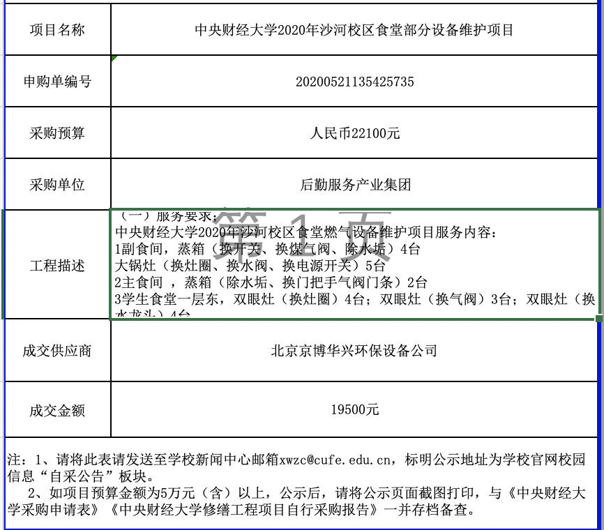 beat365在线体育官方网站2020年沙河校区食堂部分设备维护项目自行采购需求及结果公示